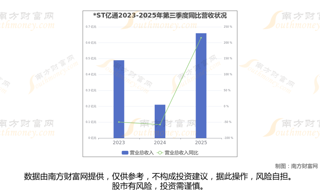 于2025年第三季度,亿通科技披露了其业绩表现(如上图),其中主营业务收入6616.18万元,相较于去年同期215.69%。