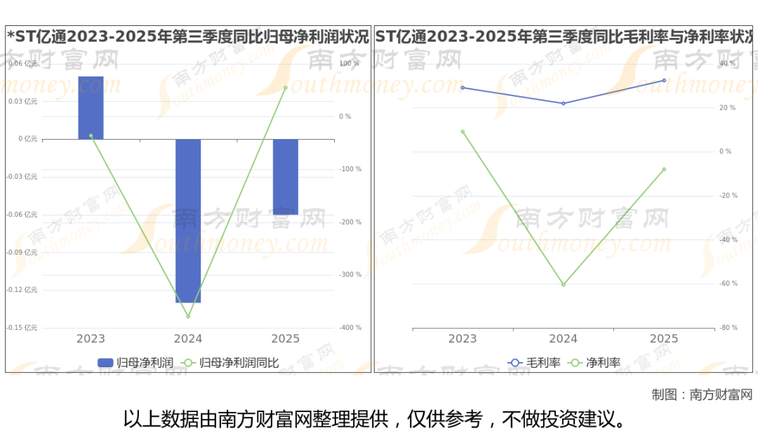 2025年第三季度季报显示,*ST亿通公司实现净利润-569.61万,同比上年增长率为54.95%,毛利率32.48%。