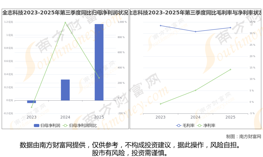 2025年第三季度季报显示,全志科技公司实现净利润1.17亿,同比上年增长率为267.36%,毛利率32.57%。