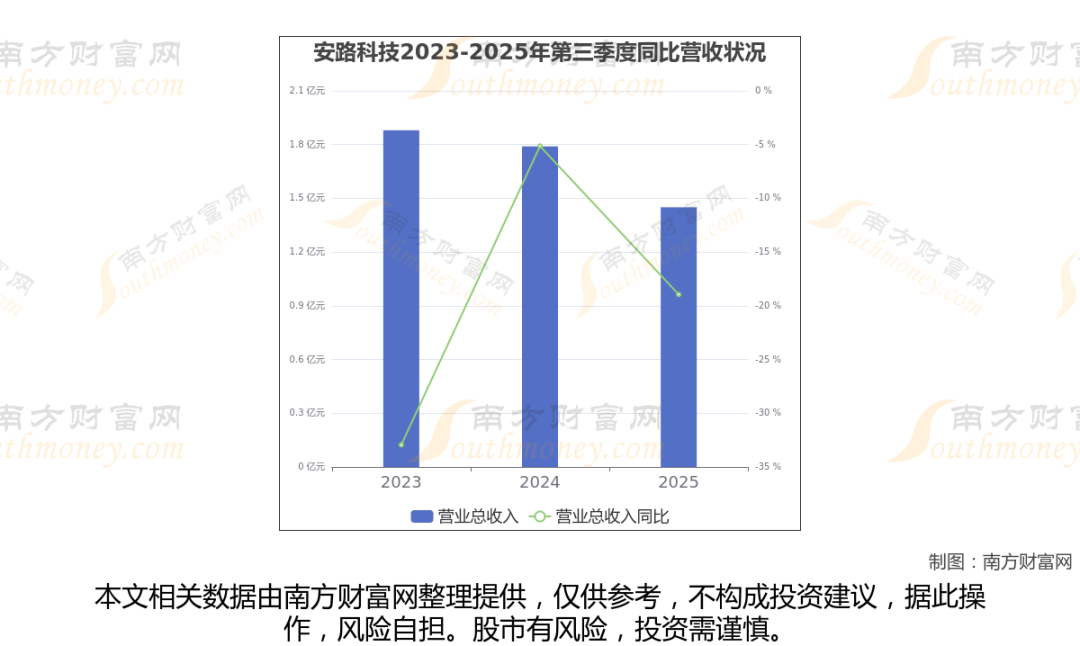 安路科技披露了2025年第三季度财报。报告显示(如上图),安路科技2025年第三季度实现营收1.45亿元,同比-18.95%。