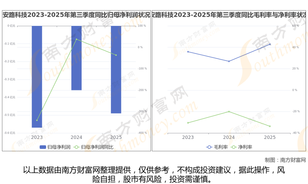 2025年第三季度季报显示,安路科技公司毛利率42.79%,净利率-33.71%,归属净利润-4884.28万,同比增长-36.47%。