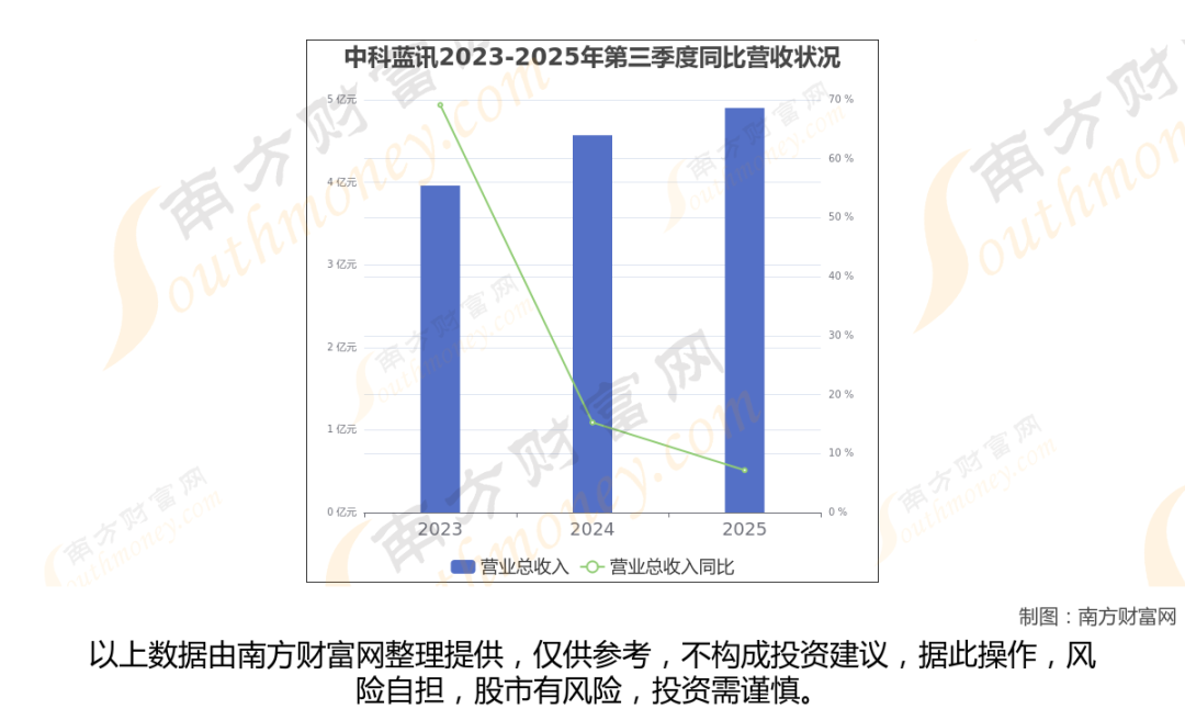 于2025年第三季度,中科蓝讯披露了其业绩表现(如上图),其中主营业务收入4.9亿元,相较于去年同期7.17%。