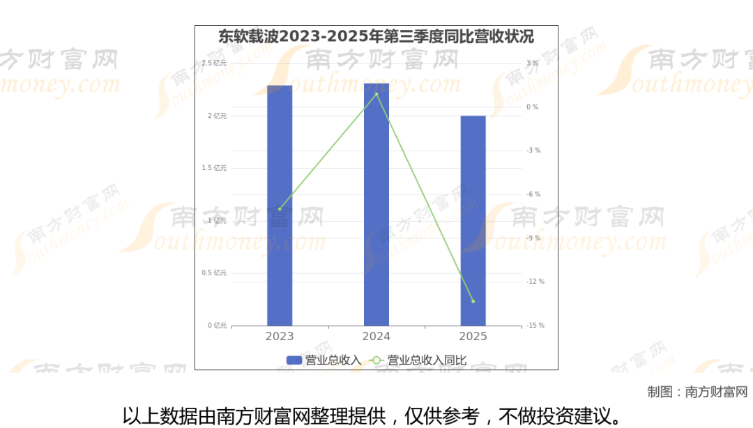 东软载波披露了2025年第三季度财报。报告显示(如上图),东软载波2025年第三季度实现营收2亿元,同比-13.33%。