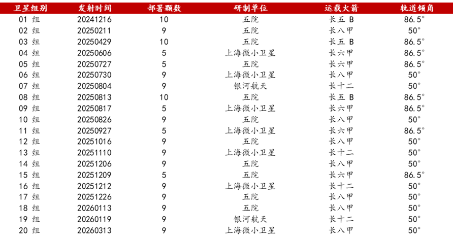 星网:截至目前,星网已发射20组163颗低轨卫星,即将实现阶段性组网。其中,16组卫星于2025年下半年后完成发射,组网速度明显提升。我们认为今年星网将维持高发射速率,年度发射卫星数量持续增长。根据我们的测算,2027-2028年星网将实现全年1000颗卫星的发射,2035年将完成全年近2500颗卫星的发射。星网发射&招标密集期有望到来,相应核心供应商将深度受益。