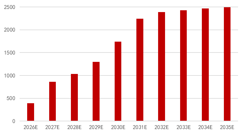 图:2026-2035年GW卫星发射数量预测