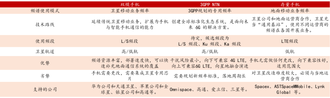 图:手机直连卫星的主流方案