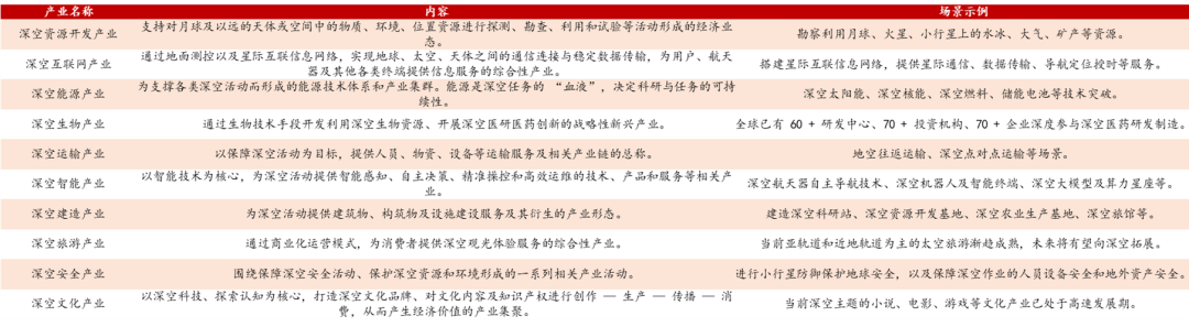 国家多次强调深空经济概念,市场空间将于2040年达到万亿美元。25年9月4日,首届深空经济与产业发展大会首次提出深空经济概念框架:深空经济是指利用深空空间和天体资源,进行经济开发和应用活动的总和,涵盖了从技术研发、装备制造到运营服务的完整产业链,核心在于在于对地外天体资源的开发利用。未来的目标是从月球、火星等天体获取物质资源,带动许多地面产业的技术升级和变革。根据大会预测,2040年全球深空经济规模将达到万亿美元,市场空间潜力巨大。十五五规划不仅将深空探索列为109项重大工程之一,并且明确将在规划期内论证实施行星探测工程二期、近地小行星防御工程、太阳系边际探测工程。论证建设国际月球科研站,实施月球探测工程。深空经济涵盖资源开发、能源、生物、运输等十大产业方向。