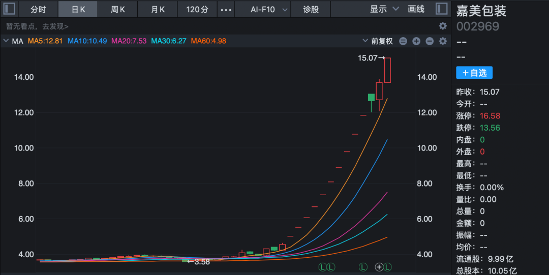 停牌3个交易日后,“13天11板大牛股”嘉美包装(002969)于1月11日晚间公布停牌核查结果,公司股票将于1月12日开市起复牌。二级市场方面,嘉美包装自2025年12月17日至2026年1月6日期间持续上涨,在13个交易日内收获11个涨停板,累计涨幅达230.48%,其间多次触及股票交易异常波动情形,最新股价为15.07元/股,创历史新高。公司表示,当前股价已背离基本面,有市场情绪过热、非理性炒作风险,未来可能存在股价快速下跌的风险。消息面上,嘉美包装本轮急速上涨与控制权变更事项密切相关。时针拨回到2025年12月16日晚,嘉美包装公告,控股股东中国食品包装有限公司(以下简称“中包香港”)拟向苏州逐越鸿智科技发展合伙企业(有限合伙)(以下简称“逐越鸿智”)转让所持上市公司2.79亿股股份(占总股本的29.9%),并在股份转让完成后放弃剩余股份表决权。前述交易完成后,嘉美包装控股股东将由中包香港变更为逐越鸿智,实际控制人将由陈民变更为俞浩。资料显示,俞浩是全球高端科技品牌追觅科技创始人兼CEO。以前述股权转让为前提,逐越鸿智或其指定的关联方拟通过部分要约收购的方式进一步增持上市公司的股份,拟要约收购股份数量为2.33亿股,占总股本的25%。公告显示,逐越鸿智受让股份及要约收购价格均为4.45元/股,所需价款分别为12.43亿元、10.39亿元。在核查公告中,嘉美包装重点披露了本次交易的资金筹措进展。公司指出,逐越鸿智参与本次收购的资金来源为自有资金及自筹资金,目前已将要约收购价款总额20%的保证金(对应2.08亿元资金)存入中国证券登记结算有限责任公司深圳分公司指定的银行账户。除此之外,自筹资金尚在申请中,部分拟通过向银行申请并购贷款取得,目前正在与银行洽谈申请并购贷款的相关事宜,是否可以申请成功尚存在不确定性。值得一提的是,根据嘉美包装最新公告,基于对上市公司主营业务发展前景的信心及中长期投资价值的认可,逐越鸿智及俞浩追加了股份锁定。具体来说,逐越鸿智将在本次交易中取得股份的锁定期由此前的18个月延长为36个月;俞浩承诺在取得嘉美包装控制权60个月内,将维持其作为上市公司实际控制人的地位。业务方面,嘉美包装主营食品饮料包装容器的研发、设计、生产和销售,并提供饮料灌装服务。经自查,公司目前生产经营活动一切正常,内外部经营环境未发生重大变化。市场颇为关心俞浩入主后,嘉美包装主业将走向何方。对此,公司表示,未来12个月内,逐越鸿智不存在改变公司主营业务或对主营业务进行重大调整的计划,不存在对上市公司或其子公司的资产和业务进行出售、合并、与他人合资或合作、或拟购买或置换资产的计划;未来36个月内,不存在借壳上市的计划或安排。
