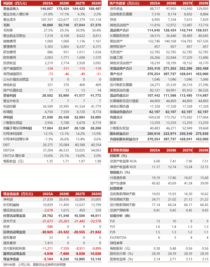 2026年3月27日,公司发布2025年年度报告。2025年,公司实现营业收入1480.6亿元,同比下-21.8%;中国会计准则下,实现归母净利润178.8亿元、同比-7.3%,实现扣非归母净利润177.2亿元、同比-7.3%;国际会计准则下,实现归母净利润145.0亿元,同比-19.99%。