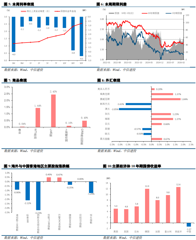 二、中国债市:本周债市震荡走强,各期限利率下行。