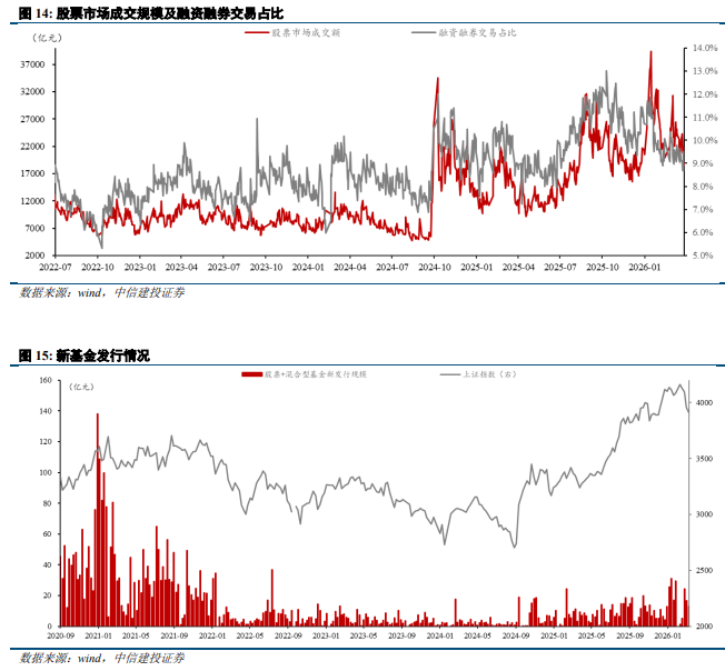 股市交易活跃度边际回落幅度较大。本周平均日成交额为20994.42亿元,较上周21,971.53亿元的日均成交额进一步下滑。