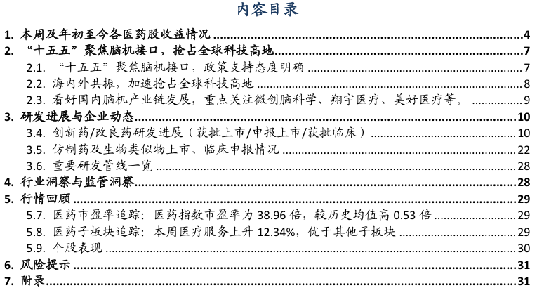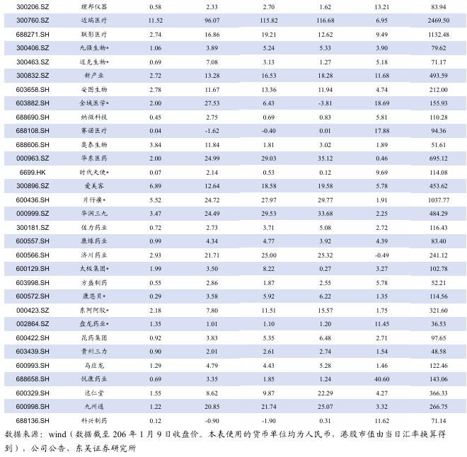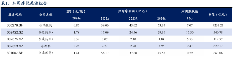 1. 本周及年初至今各医药股收益情况
