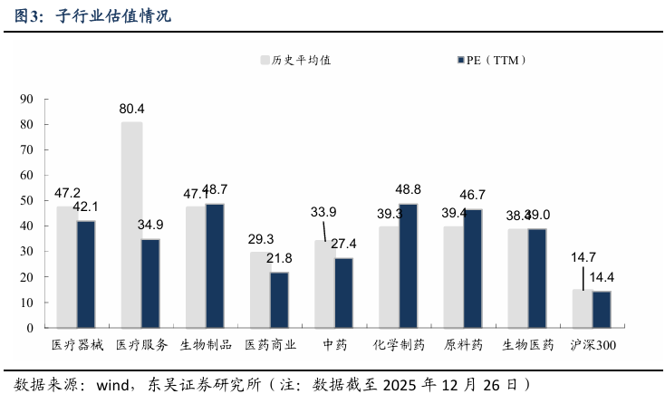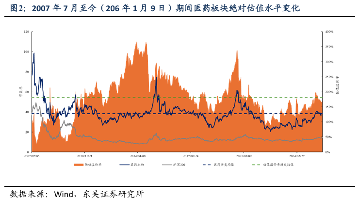 截至2026年1月9日,医药指数市盈率为38.96倍,环比上周上升2.01倍,高于历史均值0.53倍;沪深300指数市盈率为14.41倍,医药指数盈利率溢价率为170.4%,环比上周上升9.2pp,低于历史均值10pp。