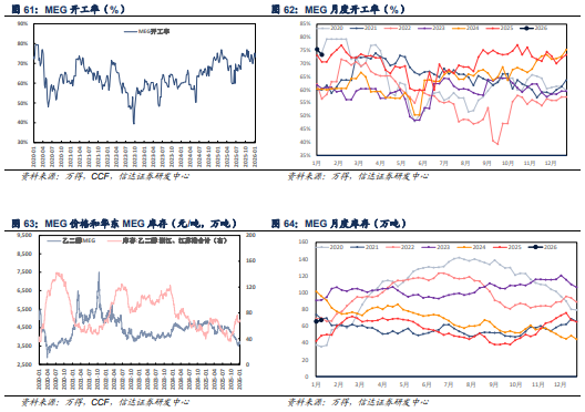 MEG:价格偏稳运行。目前MEG现货周均价格在3682.14( 0.00)元/吨,华东罐区库存为69.00( 3.40)万吨,开工率73.32%(-1.98pct)。