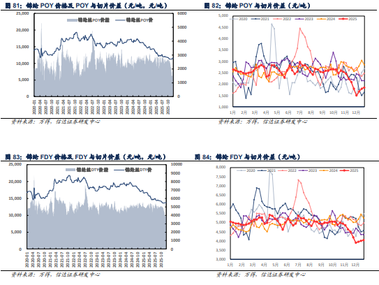 锦纶纤维:产品价格持稳运行,价差小幅修复。本周锦纶纤维POY、FDY、DTY平均价格分别为11600.00( 0.00)、13800.00( 0.00)、12400.00( 0.00)元/吨,与锦纶切片单吨价差分别为1971.43( 64.29)、4171.43( 64.29)、2771.43( 64.29)元/吨。