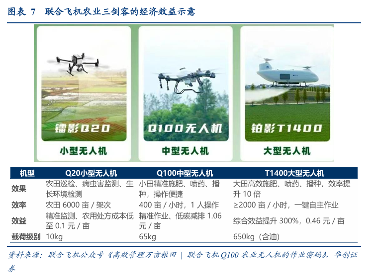 2)根据联合飞机公众号2025年8月15日报道《高效管理万亩粮田 | 联合飞机Q100农业无人机的作业密码》介绍:
