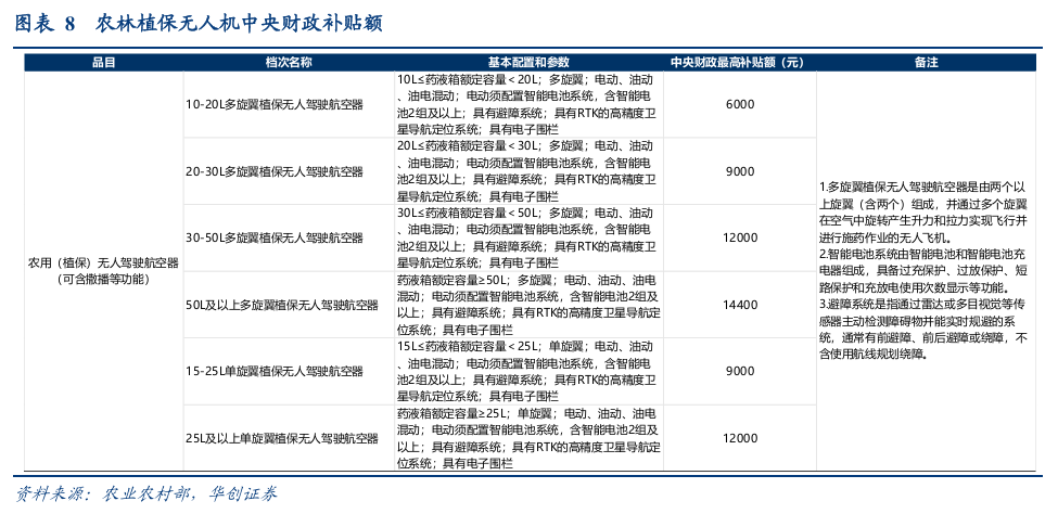 3、我们测算我国农业无人机潜在需求或达到50万台,存在翻倍以上空间。