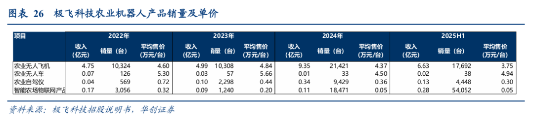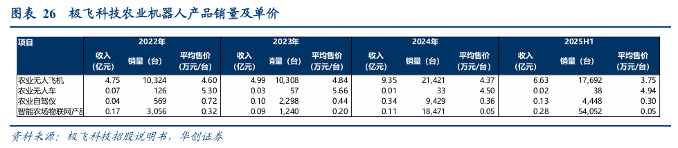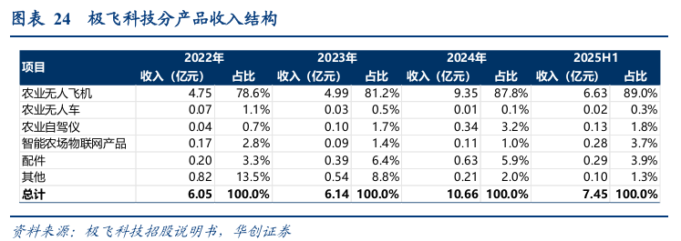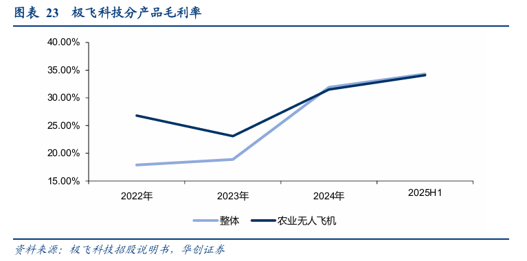 公司2022-24年毛利率分别为17.9%、18.9%、31.9%,25H1为34.3%,其中农业无人飞机2022-24年的毛利率分别为26.8%、23.1%、31.5%,25H1为34.1%。