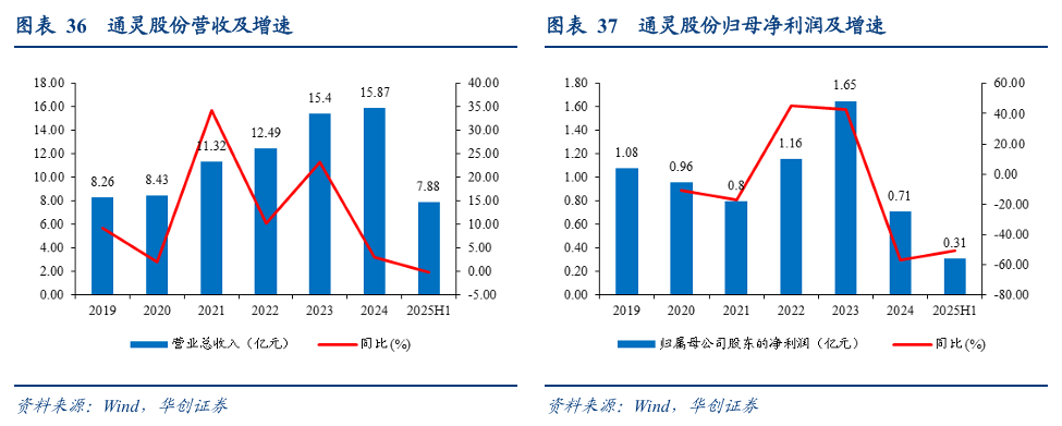 收入:2019年以来,通灵股份的营收从8.26亿元持续增长,至2024年达15.87亿元,年复合增长率13.95%。2025年上半年,公司实现营业收入7.88亿元,同比下降0.21%,相对稳健。