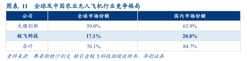 (四)农业无人机领域的市场格局:龙头高度集中。