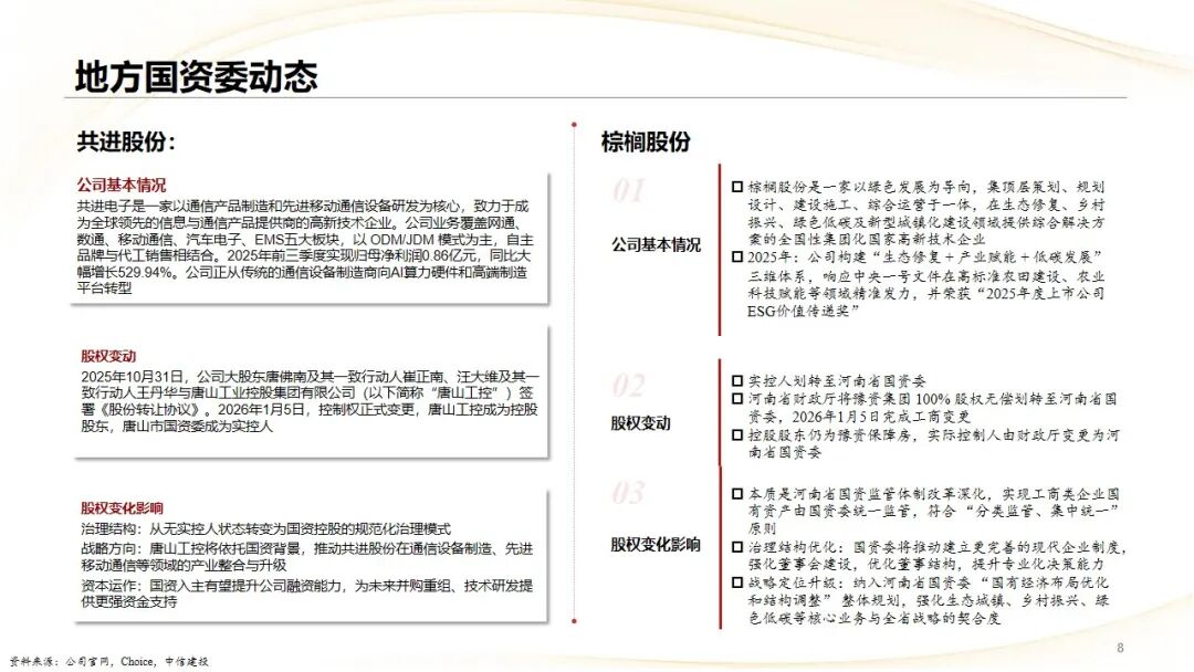 地方国企层面,2025 年底至 2026 年初股权变动与治理优化成为亮点: