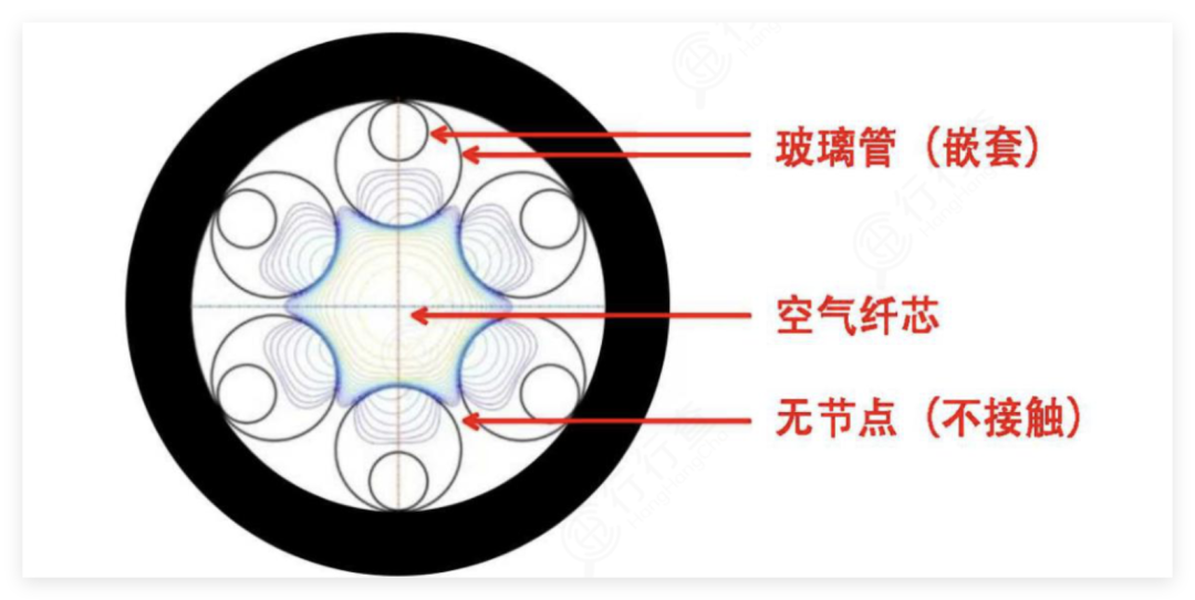 光在空气或真空纤芯传输,靠光子带隙或反谐振等微结构包层约束光,内部真空或气体环境可有效降低光传播损耗。