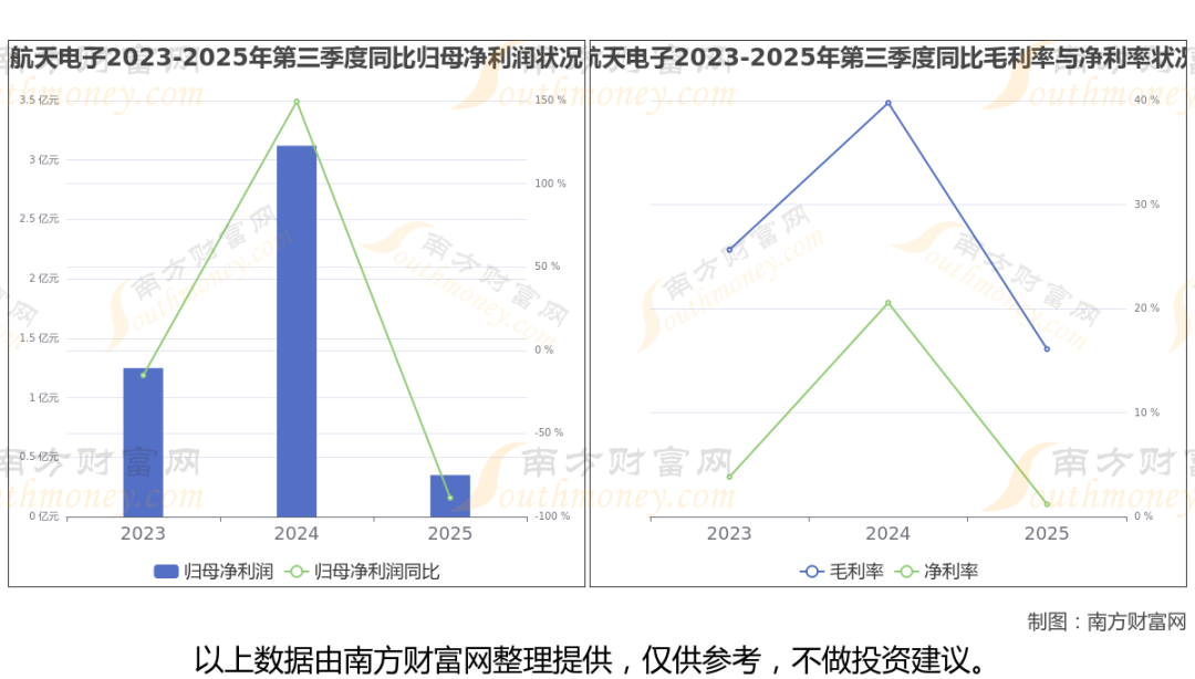 航天电子2025年第三季度季报显示,公司实现净利润3545.53万,同比增长-88.65%;毛利润为4.86亿,毛利率16.11%。