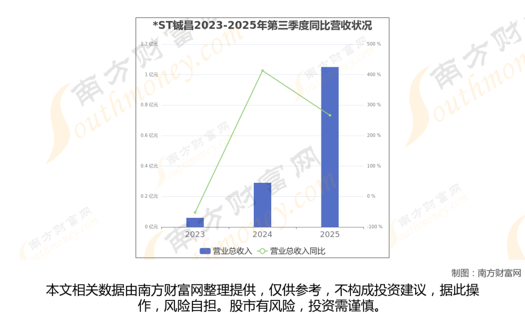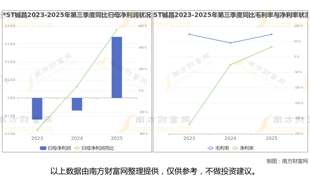 2025年第三季度季报显示,*ST铖昌公司实现净利润3372.53万,同比上年增长率为565.2%,毛利率72.96%。