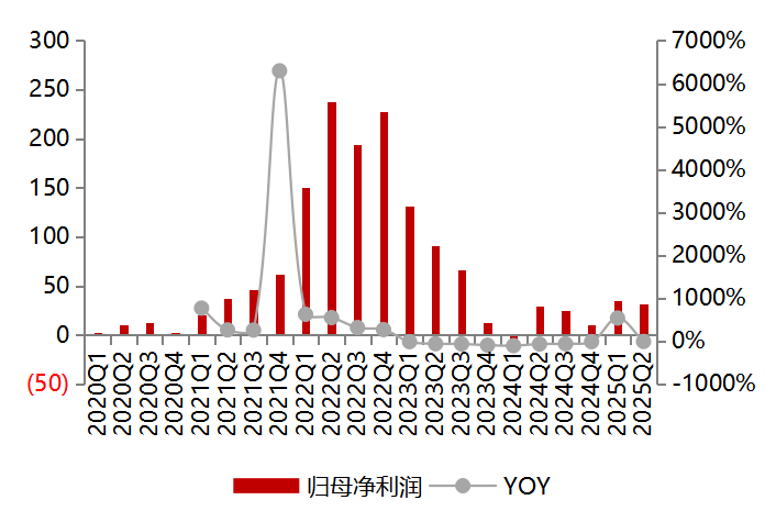 2025Q2 样本企业营业收入共计353.6亿元,同比 3 %,环比 11%。上市公司季度营业收入稳定增长,钾肥、锂盐和镍钴等大宗产品价格企稳对企业营业收入产生正向贡献,样本企业实现连续两个季度的收入同比增长。