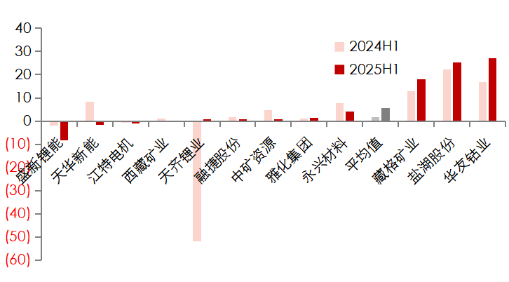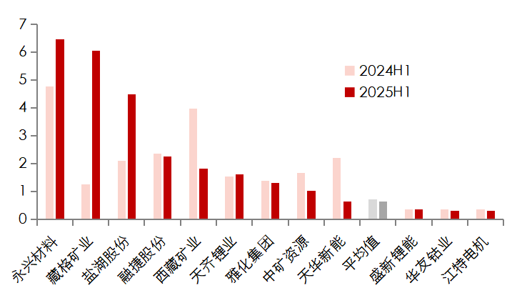 通过我们对A股12家锂矿企业2025半报的梳理,我们发现: