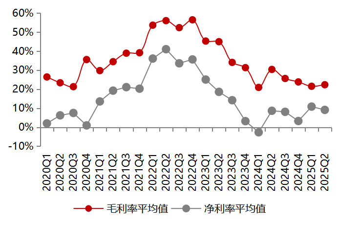 3)毛利率&净利率:2025Q2毛/净利率为22.36%/ 9.13%,出现反转趋势;