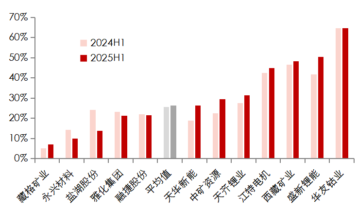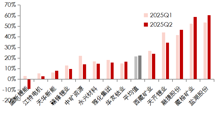 图表15:A股12家锂上市公司毛利率——2025Q2