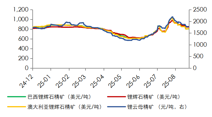 1)价格:2025Q2锂资源出清不及预期,锂价持续探底至6万元/吨位置;