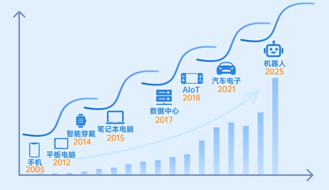 在华勤多元化产品的演进中,公司不断开拓的第二增长曲线:2005年以手机为起点,2015年拓展了笔记本电脑;2017年布局了服务器业务,2021年开始汽车电子,2025年前瞻性拓展至机器人赛道。面对每一次新业务的开拓,华勤都保持着极大的战略耐心,用长期主义的坚守,夯实能力,构建了如今多元立体的产品结构,为长期增长筑牢根基。