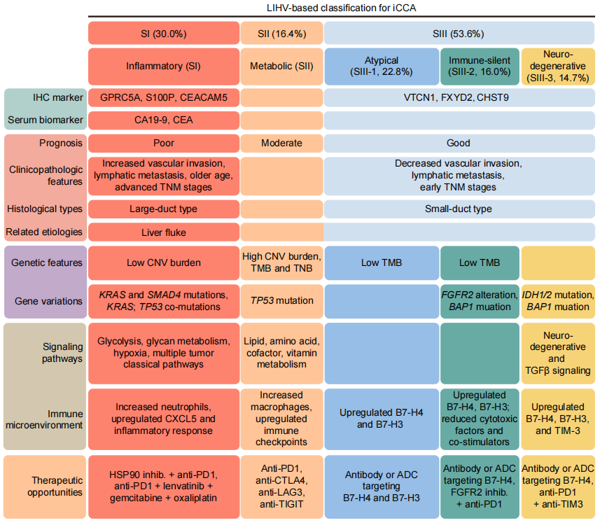 图2. iCCA分子分型对应的特征以及生物标志物总结图