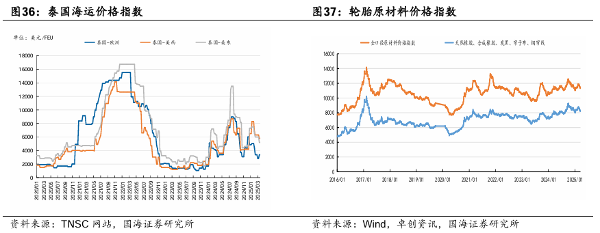 本周泰国到美西港口海运费为4850美元/FEU,环比上周增加19.75%;泰国到美东港口海运费为4050美元/FEU,环比上周增加24.62%;泰国到欧洲海运费为2482美元/FEU,环比上周持平。赛轮轮胎:公司不断健全和完善全球化营销体系和网络,在全球建立生产基地,国内有青岛、东营、沈阳、潍坊工厂,国外越南赛轮分工厂成为公司主要的利润增长点,并新增柬埔寨基地。公司研发投入提高,创新驱动发展。未来公司将充分利用“液体黄金”资源、巨胎研发等优势继续完善各种产品技术体系,进而提升公司的产品力。全球首个投入使用的橡胶工业互联网平台“橡链云”平台发布,促进产业链上下游企业的集聚、融合,实现产业链核心业务的一体化、平台化、多元化运营,形成一个“开放、共生、共赢”的生态系统,推动橡胶产业提质增效,实现高质量发展。