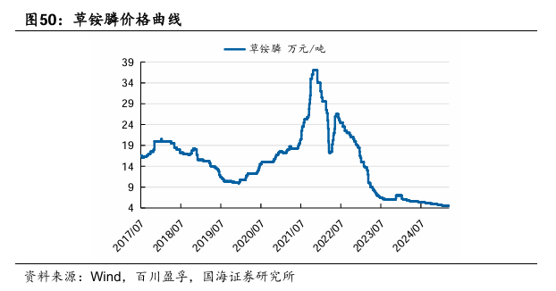 利尔化学:公司利用自身技术优势,成为国内首家掌握草铵膦、精草铵膦大规模化合成关键技术的企业。公司在精草铵膦工艺上不断创新,形成了一批高价值专利,并积极推进专利的全球布局,技术处于全球领先水平。据Wind和百川盈孚,2025年4月4日草铵膦原药价格为4.55万元/吨,较3月28日持平。