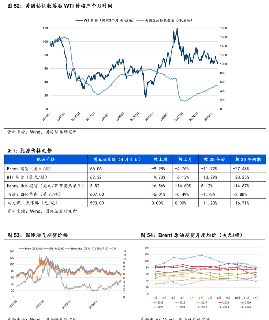 据Wind,截至本周,Brent和WTI期货价格分别收于66.06和62.32美元/桶,周环比-9.98%和-9.73%。
