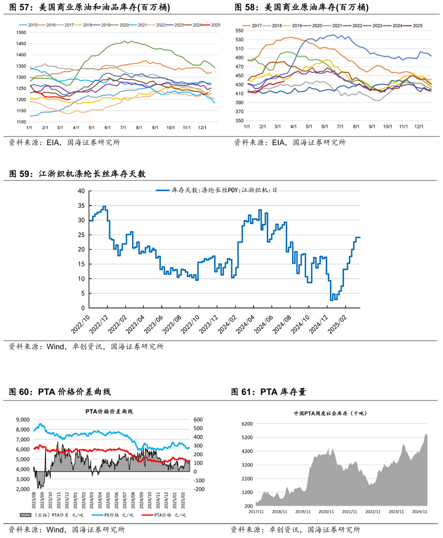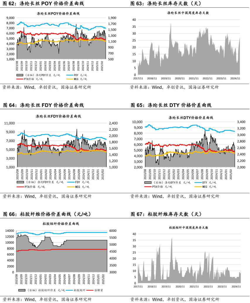 据Wind和卓创资讯,2025年4月3日涤纶长丝库存天数为25.2天,较3月27日下降2.1天。2025年4月4日涤纶长丝POY价格为6850元/吨,较3月28日持平;PTA 价格为4850元/吨,较3月28日下降50元/吨。