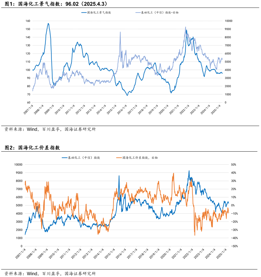 2025年4月3日,国海化工景气指数为96.02,较3月27日上升0.19。
