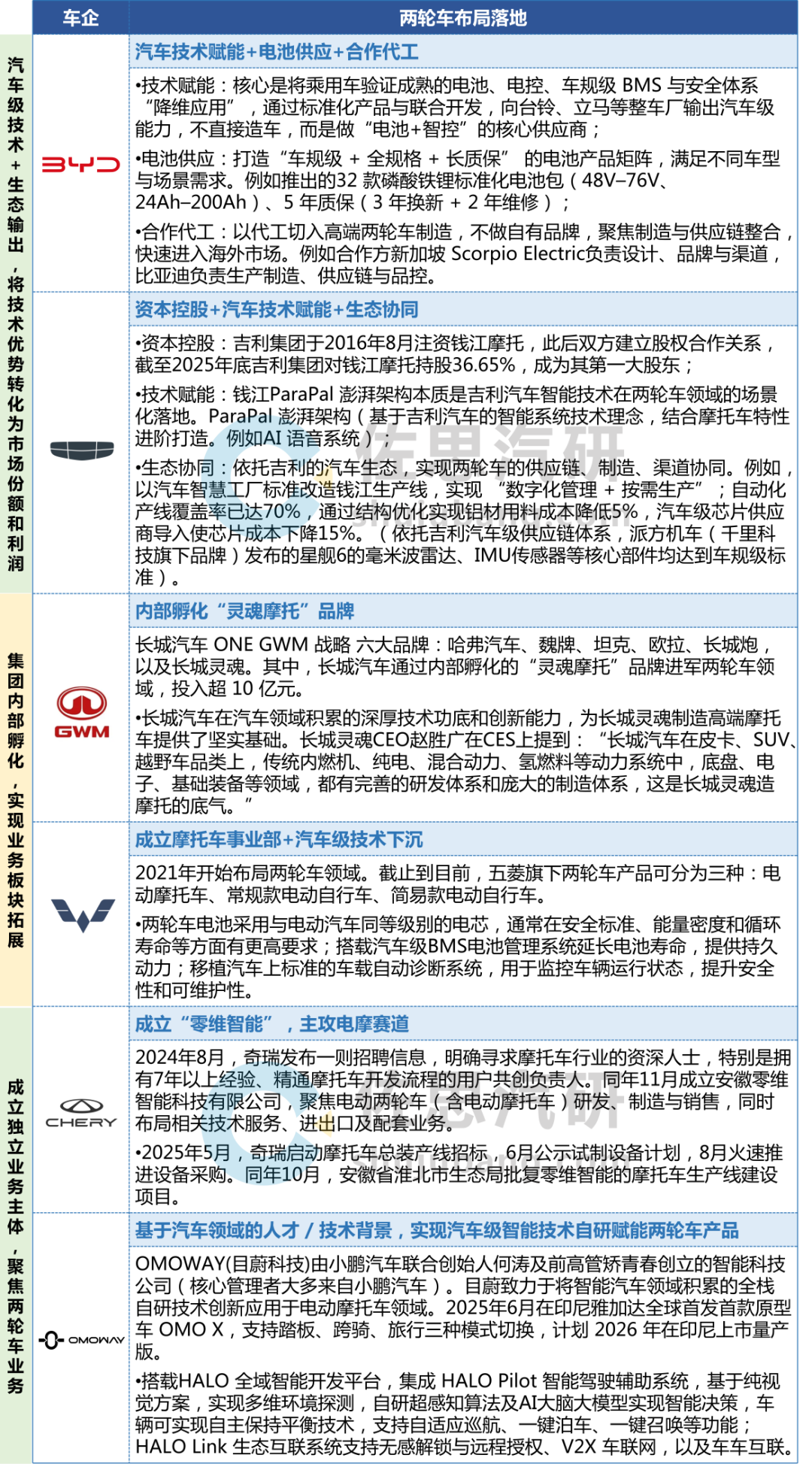 汽车厂商在两轮车领域布局研究等。