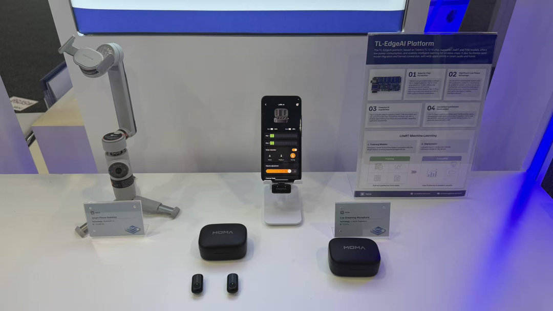 在模拟环境噪音的场景中,系统通过 AI 算法精准过滤背景音,让人声清晰度得到显著提升。TL721x SoC 已实现量产,可广泛应用于智能耳机、会议麦克风等领域。