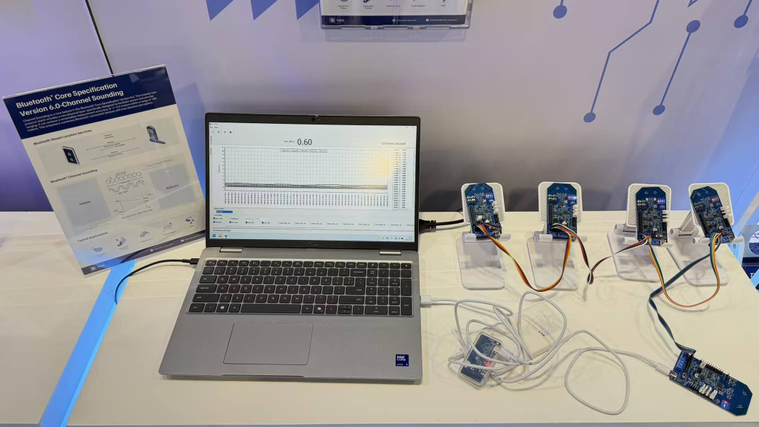 在Auracast技术演示中,泰凌微电子多款SoC(TLSR952X、TL751X、TL752X、TL721X、TL322X)支持LE Audio标准,实现单音源向无限设备广播音频。在现场多设备互联演示中,显示接收延迟低于30毫秒,48kHz采样率配合LC3编解码器,立体声效果饱满。