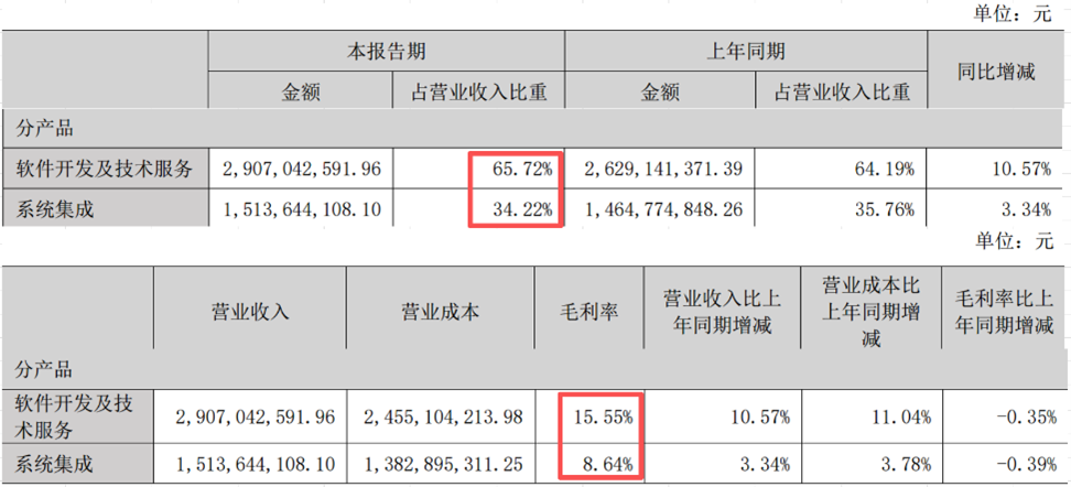 更麻烦的是,这两大业务都在走下坡路。系统集成收入占比从2020年的57%一路下滑,说明公司早意识到这条路走不远;可软件服务也没能接棒,反而在金融、政务等传统领域遭遇华为、浪潮等巨头挤压,增长乏力。