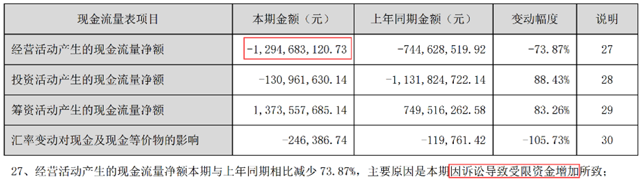 其次,回款能力堪忧,现金流持续恶化。前三季度经营活动现金流净流出12.95亿元,创近年新高。公司在财报中轻描淡写一句“因诉讼导致受限资金增加”,但结合应收账款高企、经营现金流持续大额净流出来看,这很可能意味着大量应收款项回收困难,甚至存在坏账风险。尤其在地方政府财政吃紧的背景下,神州信息这类深度绑定政企客户的公司首当其冲。