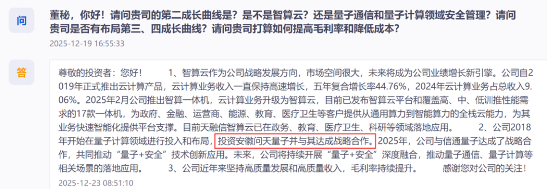 所以,从商业化成熟度看,神州信息的量子布局更接地气,天融信则更偏技术理想主义。