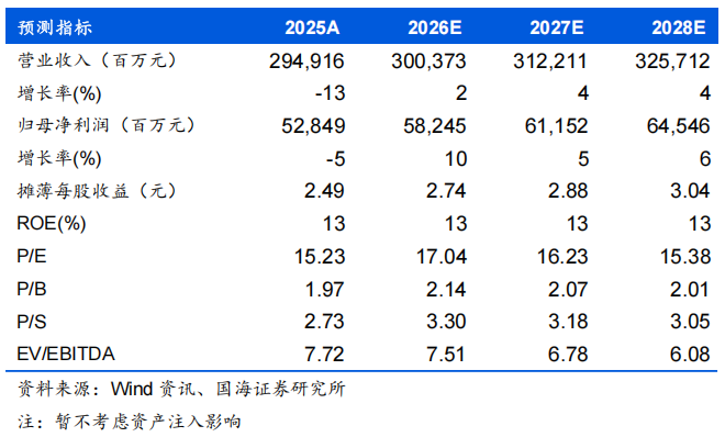 分红方面,2025年中期 拟末期分配股息额418.11亿元(含税),对应A股/H股股息率4.1%/4.7%:公司拟按募集配套资金股份发行完成后实施2025年度利润分配方案的股权登记日登记的公司总股本为基数,派发2025年末期股息现金人民币1.03元/股(含税),对应股息额223.40亿元(含税)。2025年公司中期 拟末期合计分派股息额418.11亿元(含税),分红比例为79.1%,以3月31日市值计算得对应A/H股股息率分别为4.1%/4.7%。