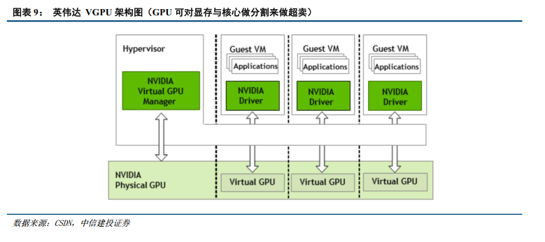 长期看,通过超卖率的提升,GPU实例将持续保持较高的盈利能力。过去十年以来,公有云价格进行了数次降低,其降价能力一方面来源于规模效应对运营成本的分摊(以及关键技术自有化),但另一方面也来源于CPU超卖能力的不断增强,使单CPU实例实际收费能力大幅上升,因此得以在不断降价的背景下实现利润率稳定;目前阿里云GPU租赁业务仍以模型微调需求为主,而TensorFlow、Pytorch等智能化应用框架开发的应用往往会独占一张GPU整卡,无法做超额出售,但伴随后续推理需求大幅提升,则GPU虚拟化是必然趋势。GPU实例超卖率的提升将进一步拉高GPU租赁业务的EBITA利润率,并为后续降价获客提供空间。