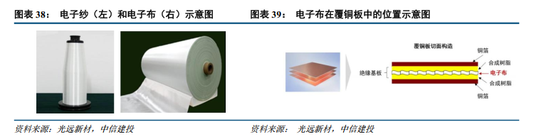 电子布在CCL中起增强作用,由电子级玻璃纤维织造而成。电子纱是玻璃纤维中的高端产品,被广泛应用于各类电子产品。玻璃纤维具有耐腐蚀、耐高温、吸湿性小、强度高、质量轻、电绝缘和阻燃等优良性能,被广泛运用于消费电子、工业、通信、航天航空等领域,电子级玻璃纤维纱,业界通称“电子纱”,是玻璃纤维纱中的高端产品,单丝直径不超过9微米,具备优异的耐热性、耐化学性、电气及力学性能。电子纱是制造电子级玻璃纤维布的主要原材料,被广泛用于各类电子产品中。