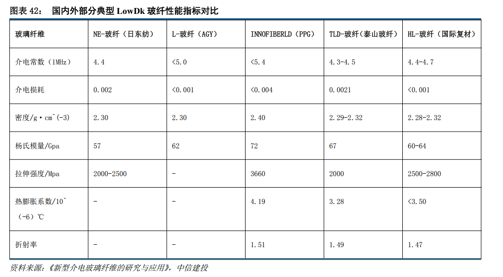 日本技术实力领先,中国企业市场份额有望快速提升。日本的LowDk玻纤发展较早,技术领先,此外美国、中国台湾、中国大陆的相关企业也占据一定市场份额。据QYR(恒州博智)统计,全球低介电玻璃纤维核心厂商有日东纺、AGY、台玻、富乔和泰山玻纤等,前五大厂商占有全球大约93%的份额。目前市场上成熟的LowDk玻纤主要有日本东纺的NE低介电玻璃纤维、AGY的L-glass低介电玻璃纤维、泰山玻璃纤维有限公司的TLD-glass低介电玻璃纤维和重庆国际复合材料有限公司的HL低介电玻璃纤维等。